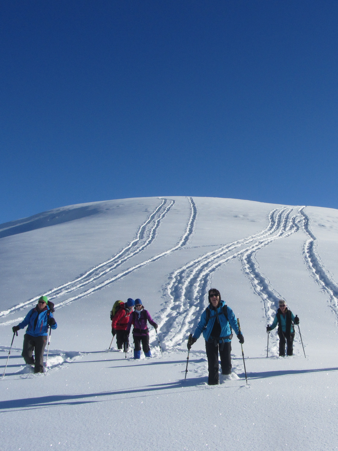 Kondition für Wanderungen von ca. 4 - 6 Stunden. Diese Tour ist auch geeignet für den Einstieg ins Schneeschuhwandern.